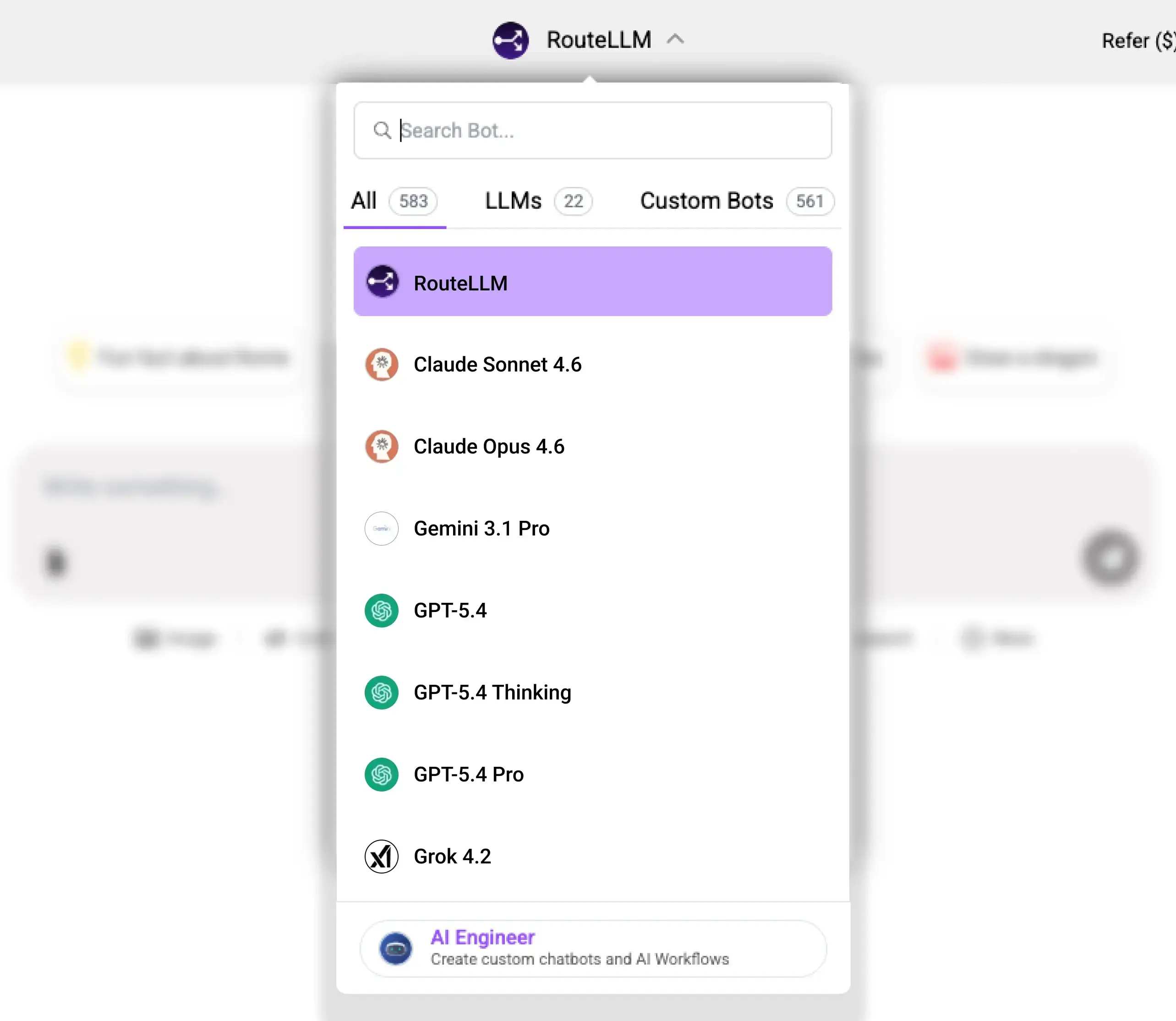 One AI assistant with access to all top LLMs, video and image generators. General purpose and coding agents included.